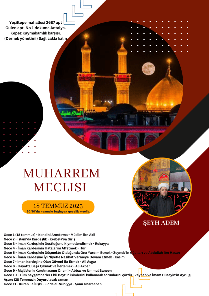 July 18, 2023 Sheikh Mateen Charbonneau Daily Updates Muharram 2023 in Antalya, Türkiye Please Share:Tweet Click to email a link to a friend (Opens in new window) Email Click to print (Opens in new window) Print Click to share on WhatsApp (Opens in new window) WhatsApp Click to share on Telegram (Opens in new window) Telegram Like Loading...